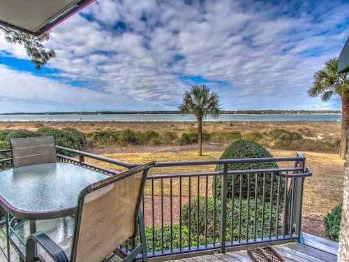 Beachside Tennis Villas are in the South Beach area at the very tip of Sea Pines Plantation. This secluded setting offers spectacular water views and sunsets. Community amenities include a beachfront pool, grilling area, and elevators. The Atlantic Ocean and Calibogue Sound come together in this area, making it perfect for watching dolphins play in the surf as sailboats gently float by.